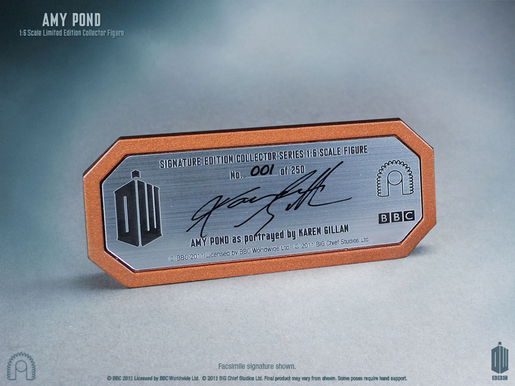 The Amy Pond 1:6 Collector Figure will be offered as both a Limited Edition (2000 pieces - £149.99/ $236US) and a Signature Edition (200 pieces - £169.99/ $267US), the latter which includes a hand-signed autograph plaque, display stand and a certificate of authenticity. Public pre-orders begin through bigchiefstudios.co.uk starting tomorrow, March 8th.