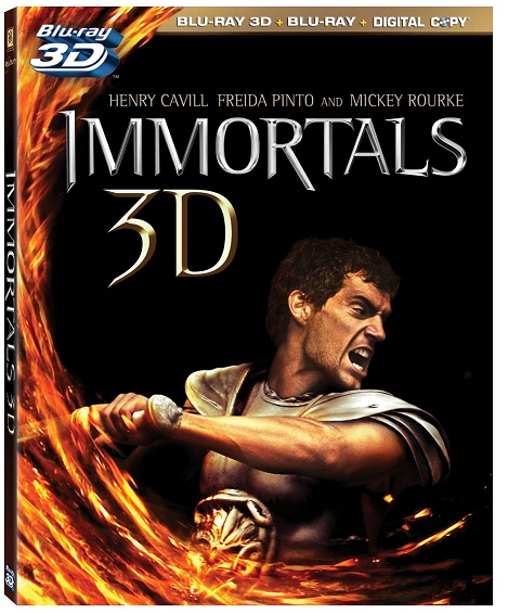 As for special features, the 3-disc set includes the film on blu-ray 3D, blu-ray, and digital copy. I'm a bit disappointed a fourth DVD disc wasn't included to provide buyers the opportunity to own the film in every media format, though that's a slight complaint. Other special features include the short 6-minute "It's No Myth," which is simply a chat with a few mythology scholars about - you guessed it! - Greek mythology; "Caravaggio Meets Fight Club - Tarsem's Vision," a 20-minute, four-part making-of featurette that covers the film's special effects, stunts, and score. Other bonus material includes an alternate opening and two alternate endings. Eight additional deleted scenes are also included as is the film's theatrical trailer and a number of "Sneak Peeks" at other films. Something I really enjoyed as well was the Immortals: Gods and Heroes digital comic, which is entertaining and expands on the story and mythology some. The word balloons are small, but it's well worth a look for those who like the film or myth in general.