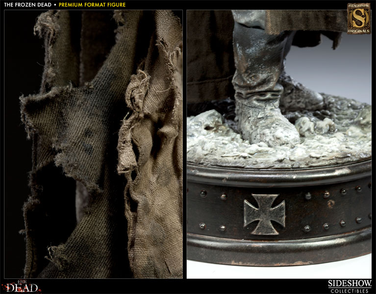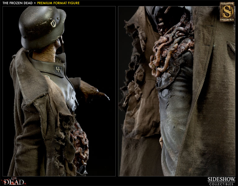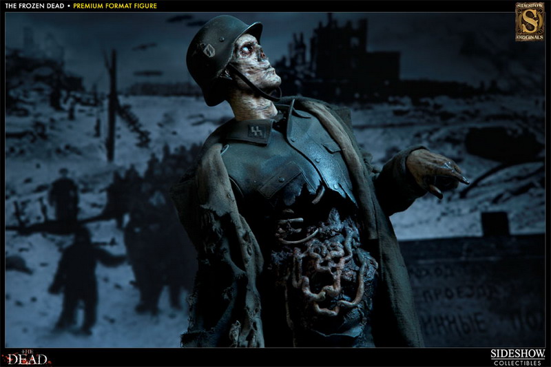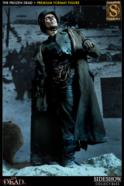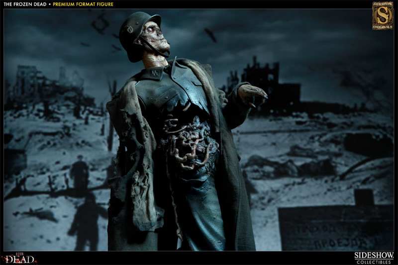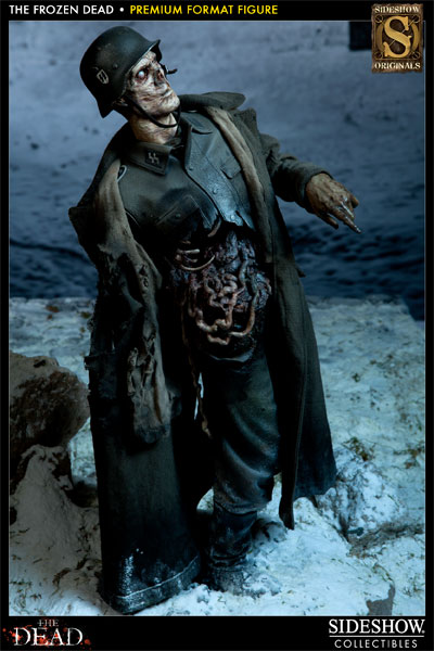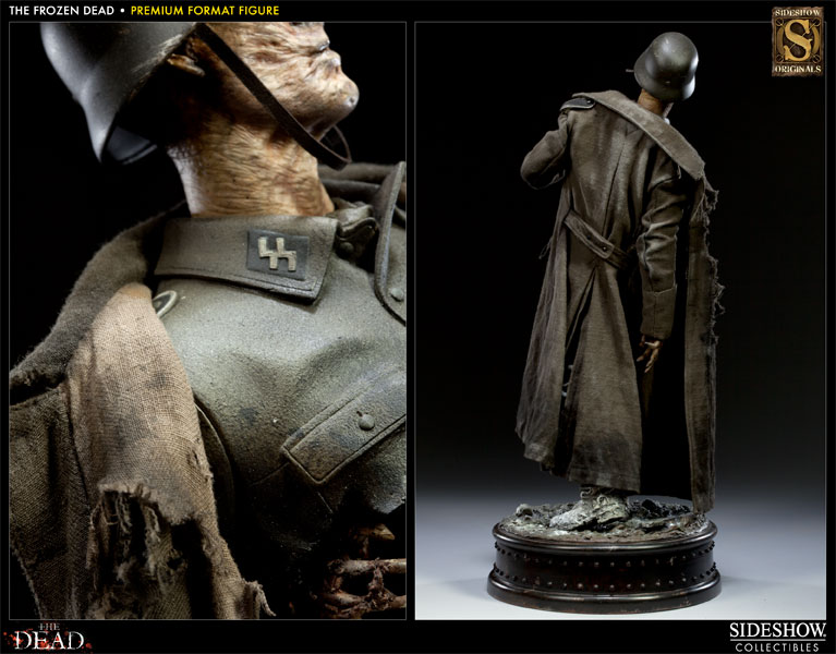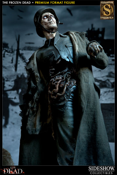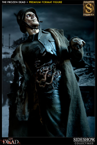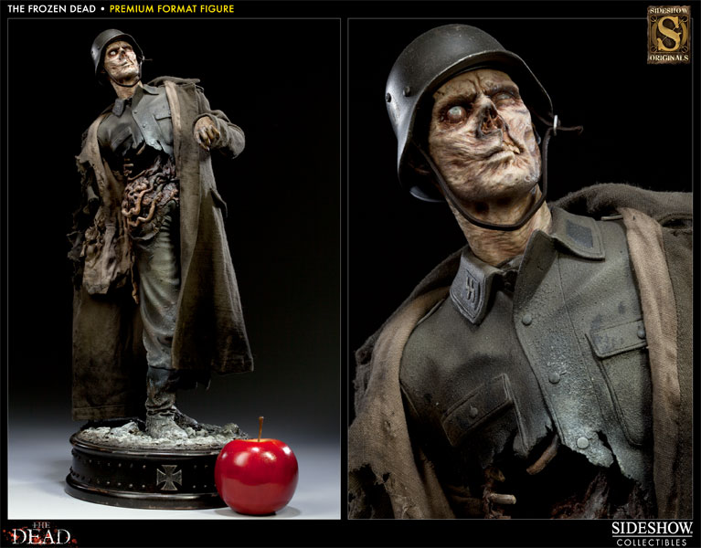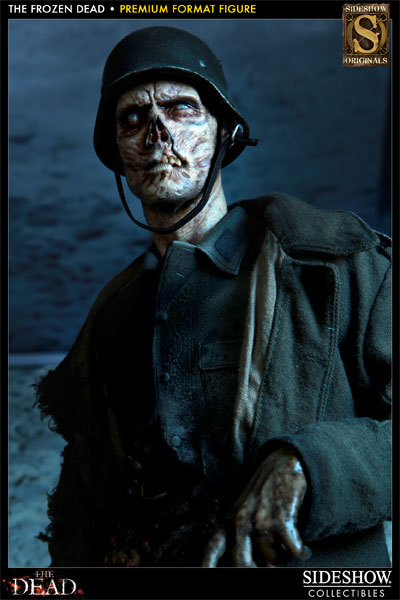 While I'm not too fond of the name, Sideshow's new Frozen Dead Premium Format Figure certainly looks cool (War of the Dead? Death Trooper? Undead Soldier?). Line up early if you want the exclusive version which includes a switch-out un-helmeted head, but for me it's all about the German WWII helmet (but where's his gun?). Check out our photo gallery below for more images.