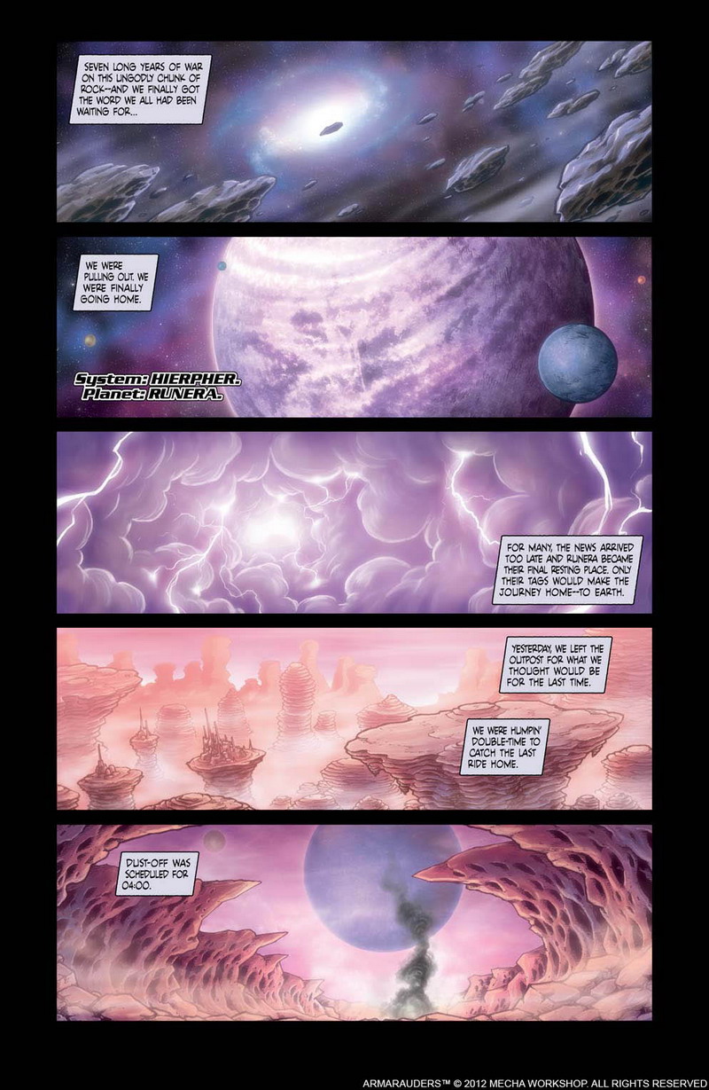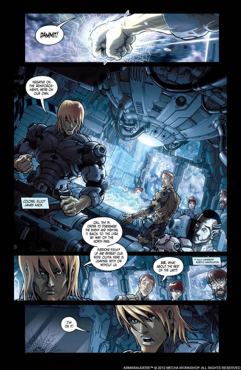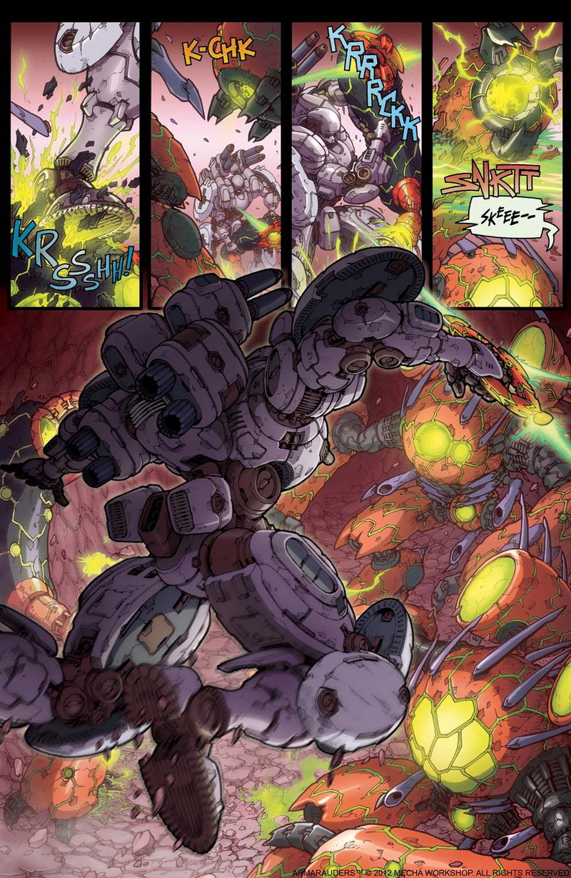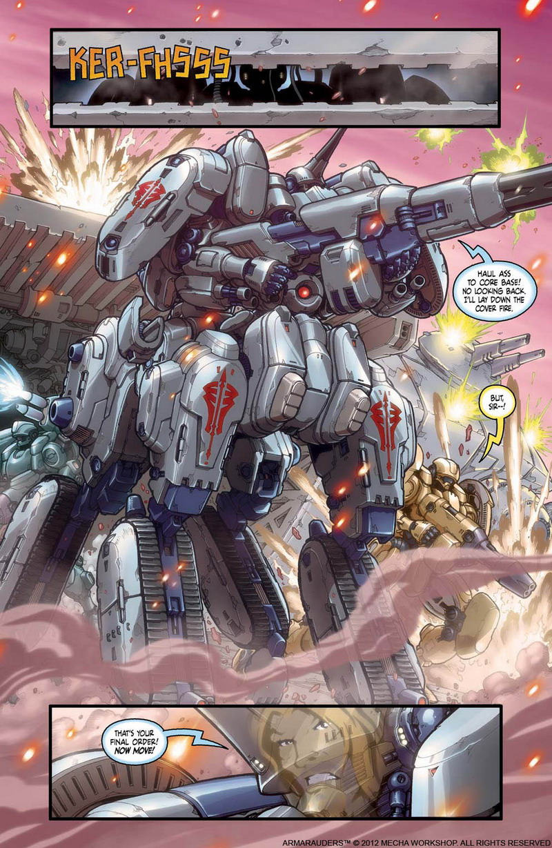 To help introduce fans to the world of Armarauders, Mecha Workshop has launched an online web-comic that can be viewed on their Facebook page and soon on a dedicated website (a mini-site has been set up - full experience to come). Two six-issue story arcs are planned, each issue to consist of 28 pages. Check out the first 16 pages of Issue #1 in our gallery below.