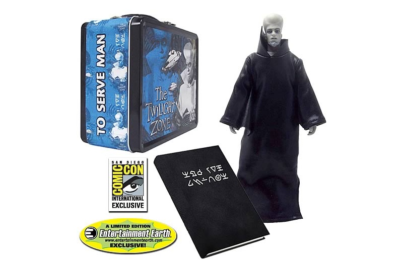 Includes an all-new 8" Kanamit action figure from The Twilight Zone episode "To Serve Man" and a Kanamit Cookbook Journal all packaged in a Kanamit-themed tin tote!