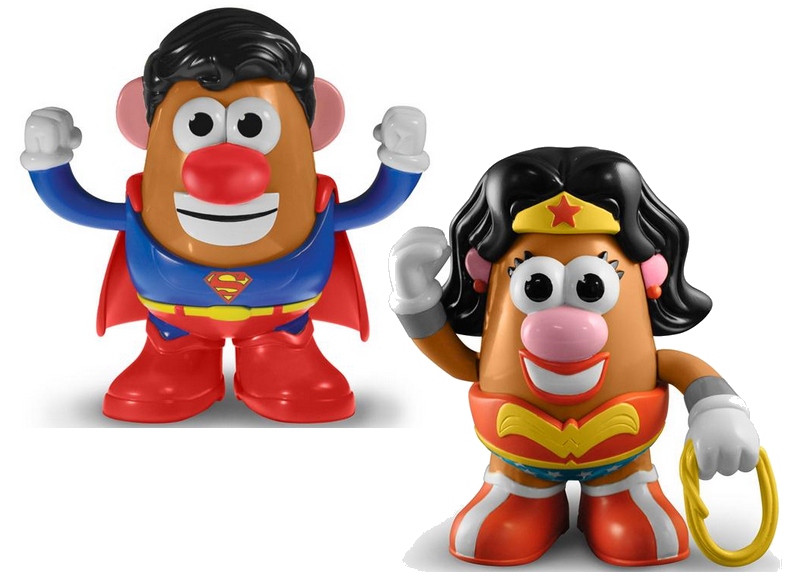 In addition to The Dark Knight Spud we announced in our story HERE, two new Hasbro/ PPW Toys licensed DC Comics Mr. AND Mrs. Potato Heads have come to light. These include Superman and Wonder Woman both donning their classic superhero costumes.