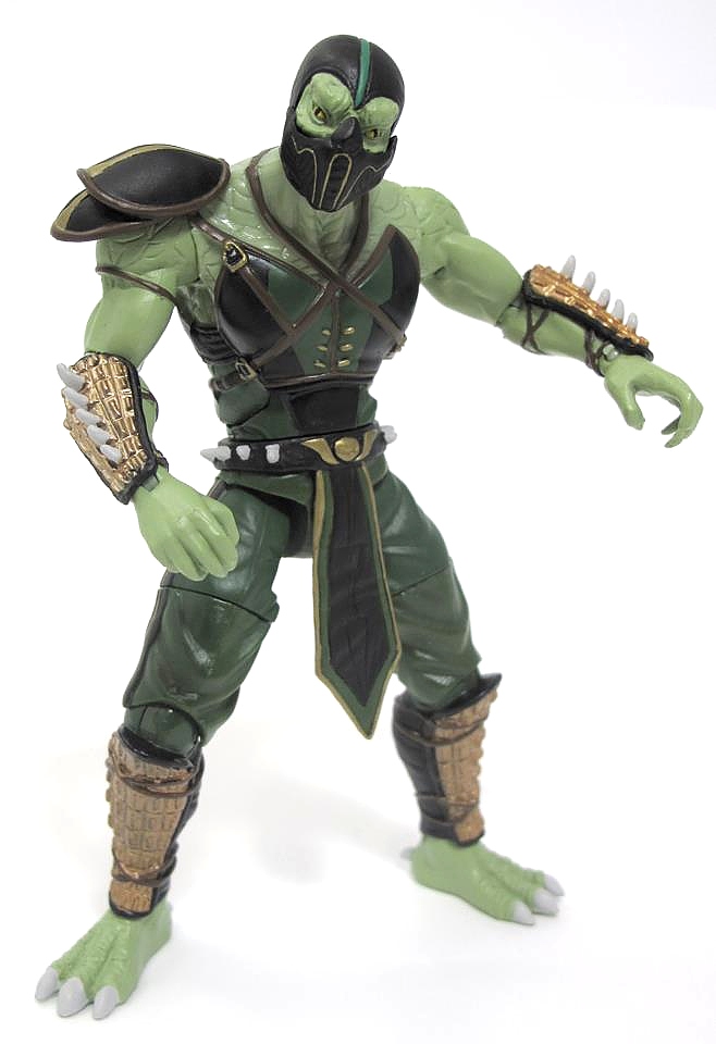 Jazwares shares with fans a look at two new 6-inch scale Mortal Kombat figures that we told you about at Toy Fair, but weren't allowed to photograph. These include a Deluxe Shao Kahn (deluxe due to his larger size, as shown in the pic above) and Reptile. Shao Kahn will include a removable hammer but not a removable mask. Reptile, on the other hand, will feature a removable mask - picture above with it off, below on.