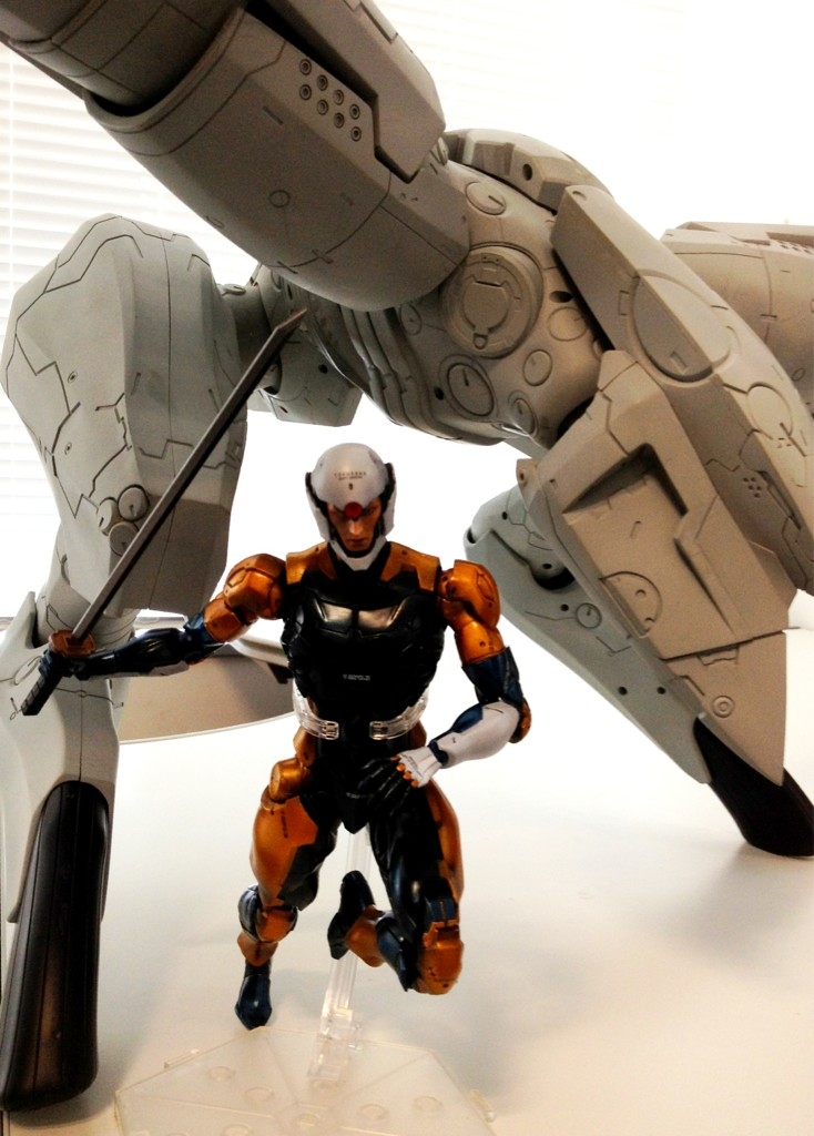 Hideo Kojima, the creator of the Metal Gear video game series, really loves tweeting his toys. This time he shows off just how big ThreeA Toys' upcoming Metal Gear RAY is going to be using a 10-inch tall Play Arts Kai Cyborg Ninja for comparison. What's equally fascinating is the Cyborg Ninja figure in the pictures: it shows Grey Fox UNMASKED. The figure out now (see our over 70 new photos HERE) comes fully masked, no alternative head is included. Could this be an upcoming variant or exclusive?