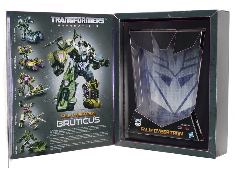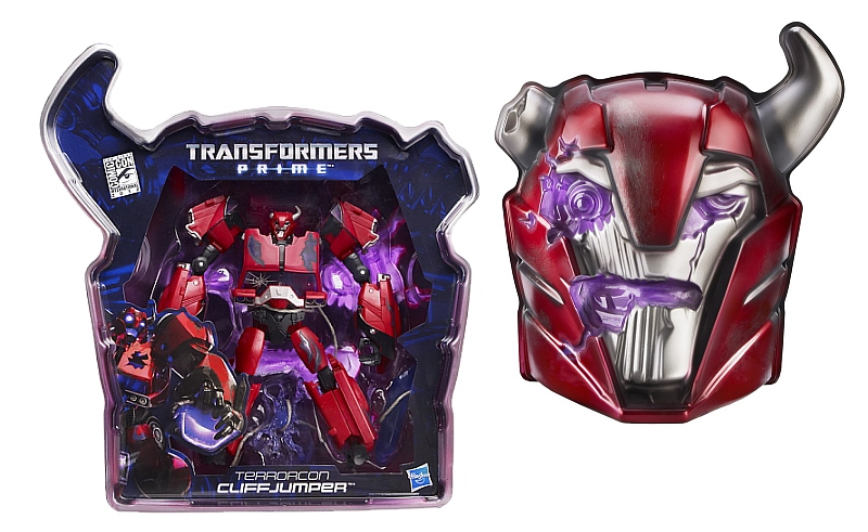 Here we have a look at two of Hasbro's 2012 San Diego Comic-Con exclusive Transformers: Terrorcon Cliffjumper from Transformers Prime and Bruticus from Transformers: Fall of Cybertron. Cliffjumper, based on his damaged look from the hit animated series, will feature a First Edition sculpt - part of the now highly sought-after original Prime figure wave that was canceled. Bruticus features an all-new color scheme that is accurate to the character in the upcoming video game. Both come in very attractive packages.