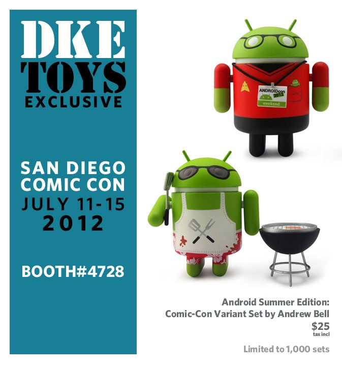 Designer toy distributor DKE announces a new San Diego Comic-Con exclusive: Android Summer Edition: Comic-Con Variant Set by Andrew Bell. Limited to 1,000 sets, this 2-pack will retail for $25 at DKE's booth #4728.