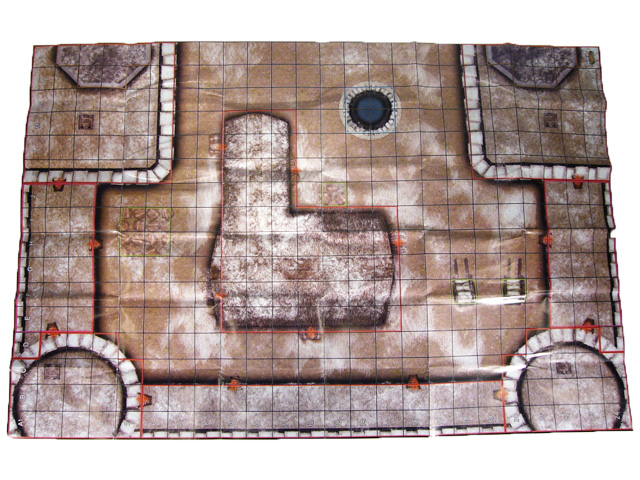 One of the main reasons why new and experienced players buy Fast Forces sets is for their new maps, and Chaos War has a couple of interesting ones. On one side is the generic-sounding “European Castle” (pictured above), the perfect lair for a Doctor Doom or a Masters of Evil or HYRDA mastermind. The map depicts a castle bailey with an elevated surrounding wall on three sides, higher turrets in all four corners, and a central courtyard with a well (water terrain), small building (elevated), and hindering terrain in the form of barrels and wagons.