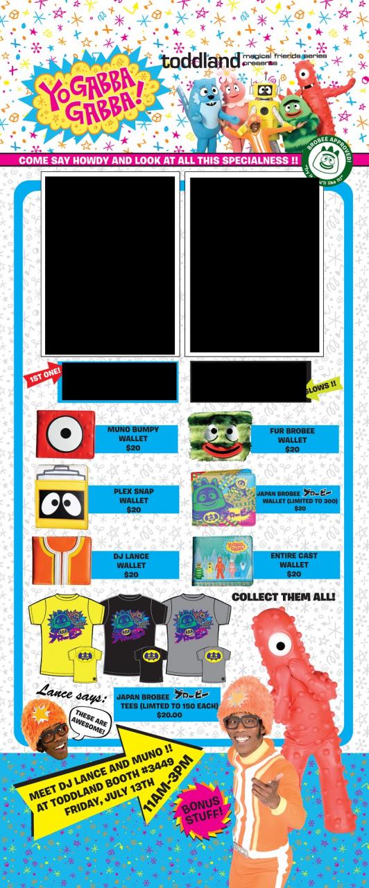 Toddland has created an assortment of hip Yo Gabba Gabba wallets ranging from a furry Brobee to bumpy Muno, each at $20 pc. An exclusive Japan Brobee t-shirt limited to 150 pcs each color for $20. And some secret releases as well.