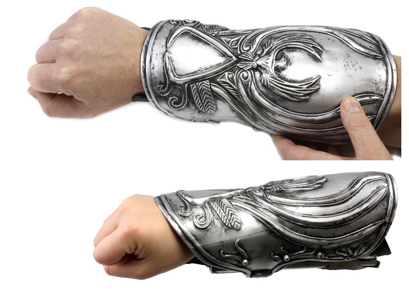 Ezio’s Gauntlet comes in two separate parts – the Outer Vam Brace and the Inner Wrist Guard (where the spring loaded action resides). It comes in “one-size-fits-most”, with adjustable straps to fit almost any forearm: