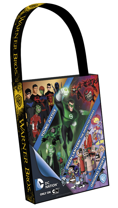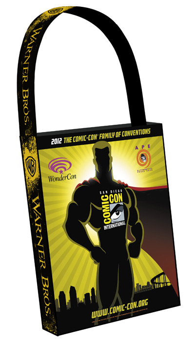 Designed by Warner Bros. Worldwide Television Marketing, the bags feature double-sided artwork. Each will have the all-new Comic-Con 2012 official design on one side (pictured top), with the other highlighting Warner Bros. titles, including TV series — live-action and animated — from Warner Bros. Television and Warner Bros. Animation, and upcoming theatrical features from Warner Bros. Pictures.