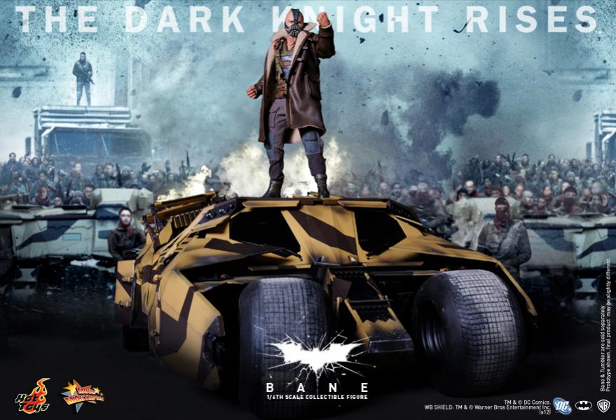 Hot Toys continues to unleash new 1:6 scale collectibles based on the soon-to-be-released epic Batman film finale, The Dark Knight Rises. Scheduled to ship in the first quarter of 2013, these items include the main villain of the movie, BANE, as well as a new color variant of the Tumbler featuring a desert camouflage.