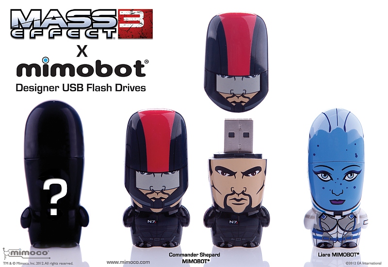 Mimoco announces that they have teamed-up with Bioware to release new Mimobot designer flash drives featuring characters from the hit video game, Mass Effect 3. While oddly not for sale at Comic-Con, these Mass Effect 3 Mimobots are available now through Mimoco.com. This collection stars Liara, Commander Shepard (with removable helmet) and a top secret character. Limited to only 2000 per character made in 16GB capacity.