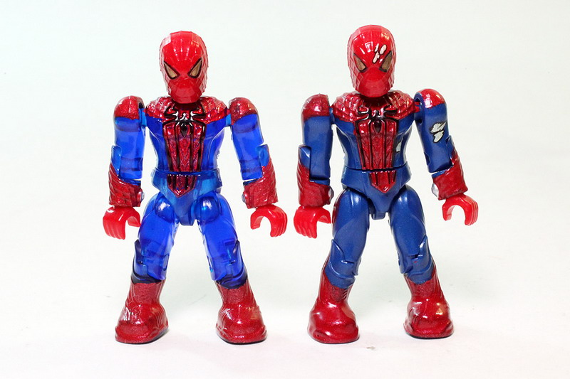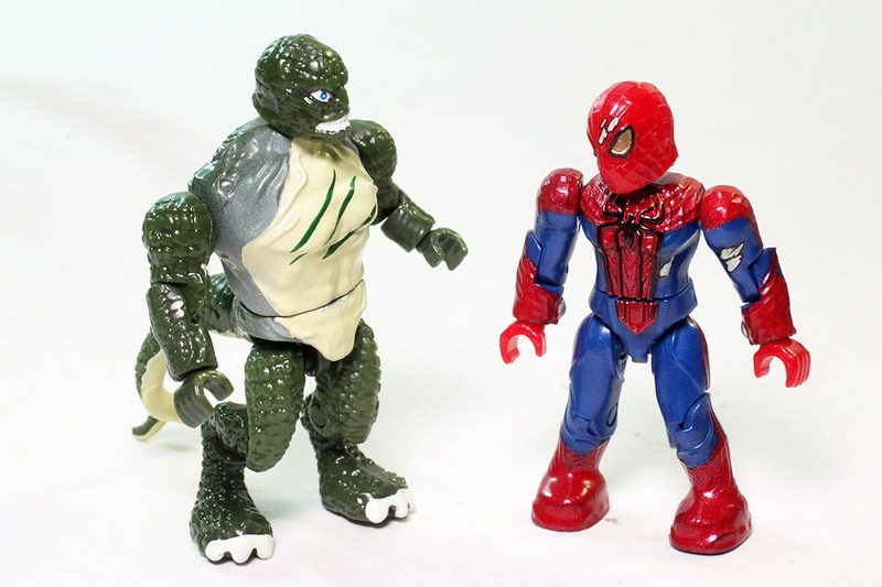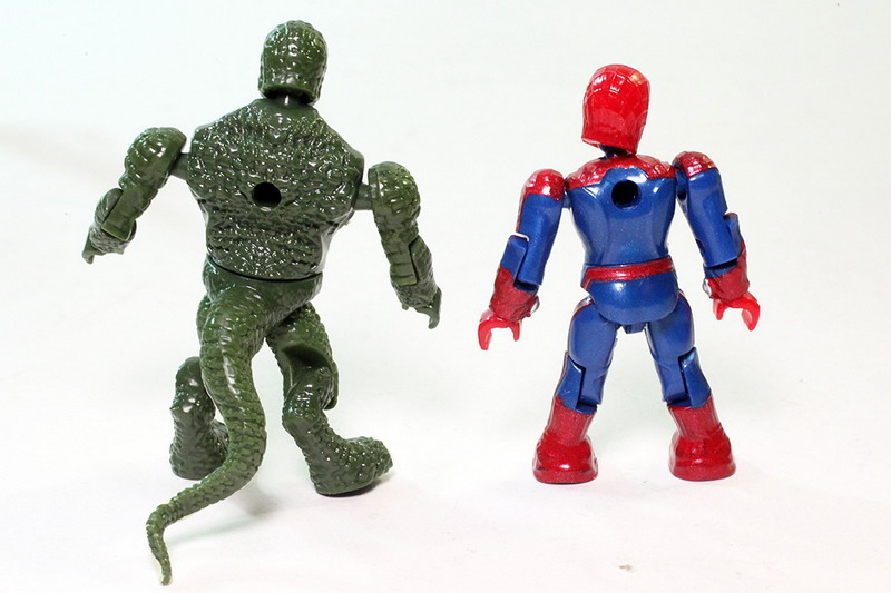 The micro-figures are pretty nicely sculpted and detailed, with an amazing amount of articulation for a figure of this scale. They’re roughly as tall as He-Man’s boot (Masters of the Universe Classics) but have twelve points of articulation! The arms, head, legs all can pop on and off so if you want to swap parts to make a crazy Spider-Lizard-Man, you by all means can.