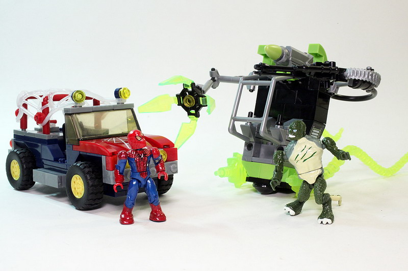 Sony Pictures has successfully rebooted the Spider-Man franchise with the new The Amazing Spider-Man motion picture but there’s one scene you won’t find in the film but rather in the toy aisles. Mega Bloks, maker of great building sets for Halo, Power Rangers and other hot licenses, have stepped up to create clever toys that may have been had The Amazing Spider-Man been a cartoon series for the younger demographic. The Bridge Showdown is just one of the larger scale Spider-Man building sets from Mega Bloks and comes with both Spider-Man and Lizard figures, Spider Jeep, and a Lizard Attack Walker.