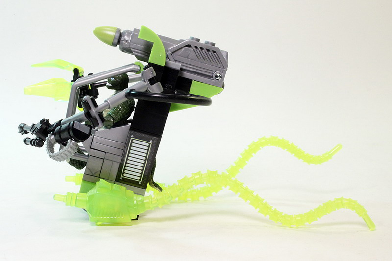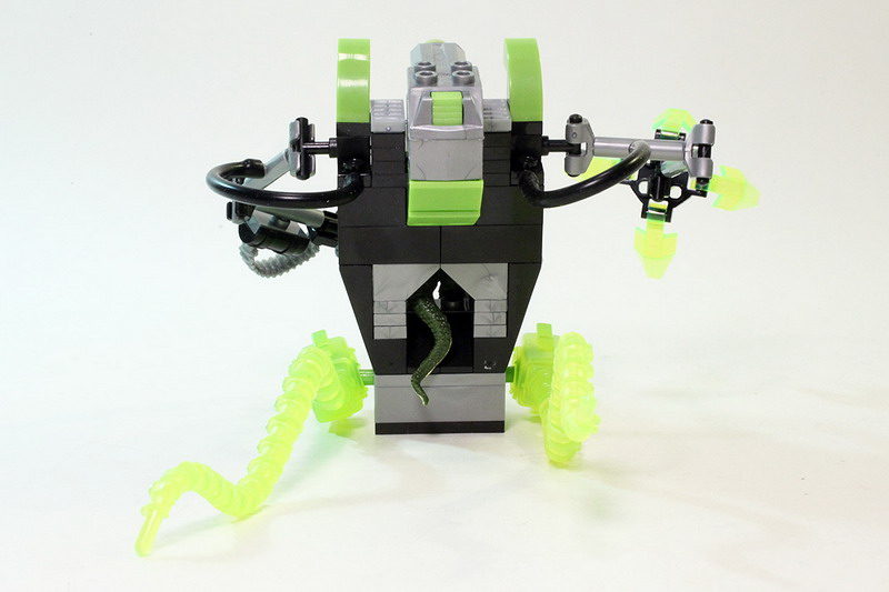 The cool factor of the Lizard Attack Walker are the arms. One arm is heavy artillery, the other is a claw. The instructions tell you which side they go on but you can easily swap them if you wish (the box art is swapped). On the very top of the walker is a firing missile launcher.