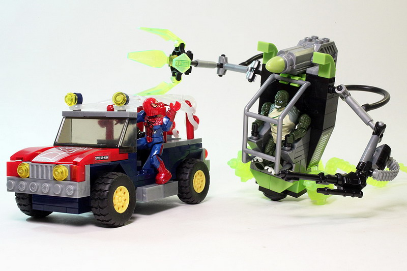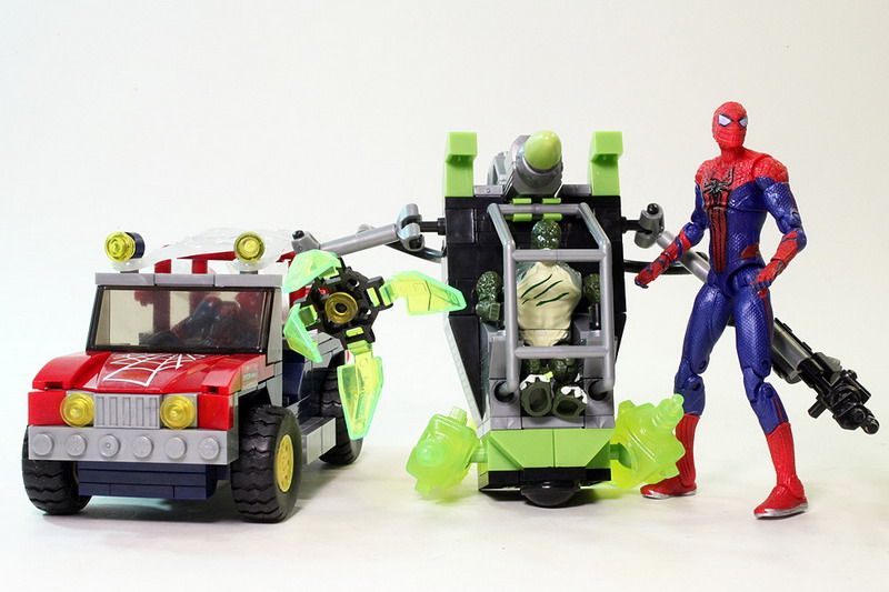 This set comes with two vehicles, one for each character: Spider Jeep and the Lizard Attack Walker. The walker is a pretty interesting contraption that has no wheels and no legs, but it does have two neon tails. I’m not exactly sure how it’s supposed to move but it’s a toy so do whatever you want! I’ll pretend it hovers... despite being called a “walker”.