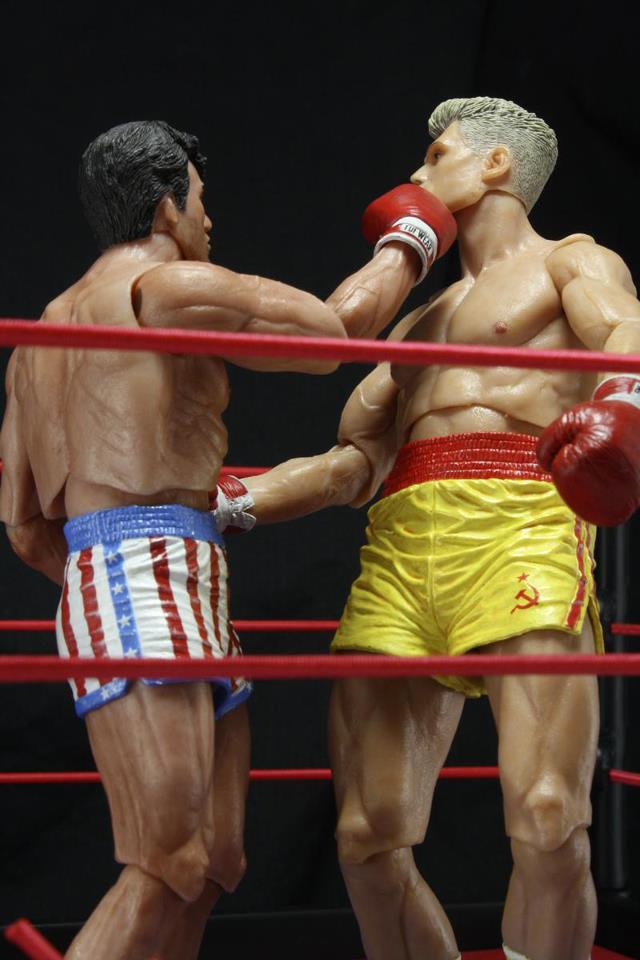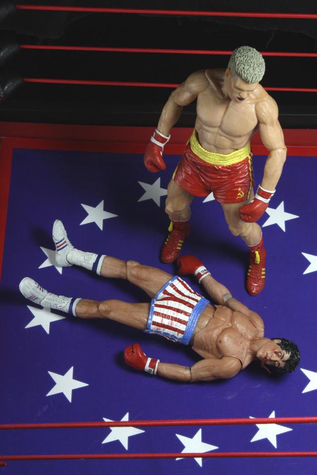 NECA shares new photography showing off their newest assortment of Rocky action figures. Hitting store shelves now, Rocky Series 2 features Rocky Balboa in both "Clean" and "Battle Damaged" (bloody spit included!) versions, and Ivan Drago in two versions as well, in Yellow and Red (damaged) trunks.