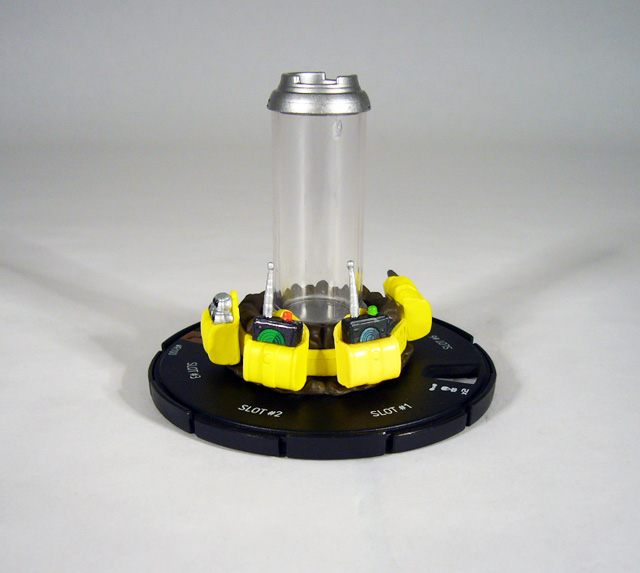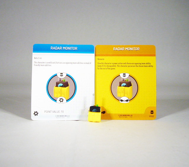 Like the Batarangs and others, the Radar Monitor can be played as a relic or attached to the Utility Belt resource dial. A repaint of the Sonic Transmitter (with a blue screen and green light), the Monitor functions as a 10 point relic that when picked up turns a character into a wild card who can only use his/her opponent’s team abilities. But wait till you put it on the Utility Belt... as a resource the Radar Monitor lets a character possess an opposing team ability, even if it is Uncopyable!