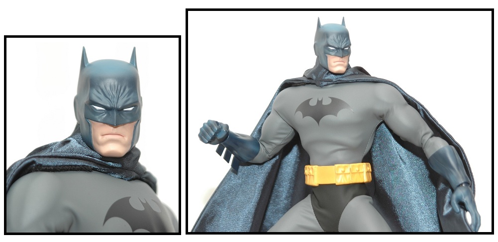 The first thing worth mentioning here is the impressive head sculpt, which is spot-on to Lee's Batman. The short bat ears, wide face with deep set white eyes and furrowed forehead looks perfect here and captures everything Lee's Batman should be: stern, committed and determined.