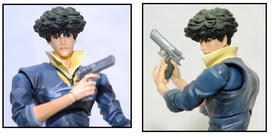 Square Enix had done an excellent job of again ensuring screen-accuracy is kept; from the colors of the clothing and accessories to the subtle shading to ensure the figures look just cartoony enough to seem screen-accurate, but not too human realistic. The anime-style eyes and skin tones are present as are the impressive tones of blue shades worked into Vicious' jacket and the black tones worked into Spike's blue jacket and pants. These are spot-on what the characters look like in motion on the screen and Square Enix can know they've done a great job of capturing the characters as they appear in the show.