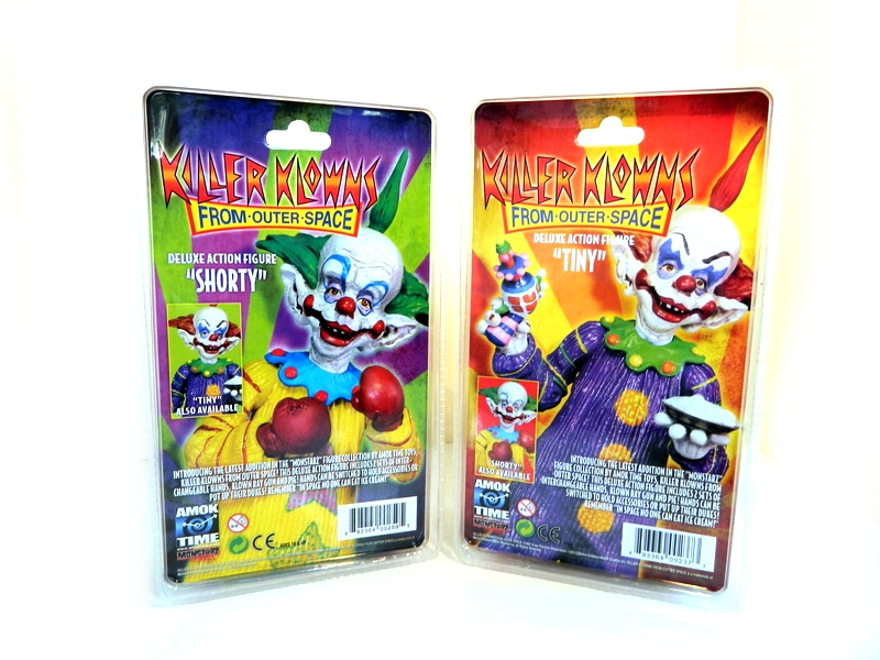 Fun accessories and even more fun figures. Amok Time has to be commended for getting these two Killer Klowns in the hands of passionate collectors. Where most modern toy companies face the market with safe, big-brand licenses, Amok has accepted the challenge of - let's face it - a pretty obscure property. It may have taken awhile to get these figures made, but unlike so many failed figure projects that have come and gone, Amok Time - and their loyal fan base - never gave up. Send in the Klowns! Get your Killer Klowns at AmokTime.com.