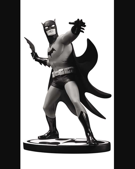 Celebrated artist Mike Allred brings his distinctive style to the caped crusader with this latest statue in the Batman Black & White line. His batarang at the ready, Batman is rendered in monochromatic tones complemented by Allred's retro design. Statue measures 7” high x 6” wide x 4.25” deep. $79.95 US