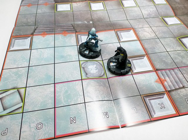 With Ultimate Clayface and the Grapnel Gun on the line, next month’s tournaments are sure to be tough events. Now let’s look at where those games will be played: the Gotham City Power Plant! A key location held by Mr. Freeze in the No Man’s Land storyline, the Power Plant is a striking outdoor map with an industrial complex taking up one half and a wooded area on the other. The latter features a couple squares of rocky blocking terrain, lots of foliage for hindering terrain, and four separate pools of water for your swimming characters. The other half of the map is a much more intimidating concrete jungle with a massive two-step elevated building, blocking terrain from high voltage power lines and smokestacks, and hindering terrain from air conditioning units and other machinery. Players are going to have an interesting time navigating all of the terrain and setting up attacks on their opponents.