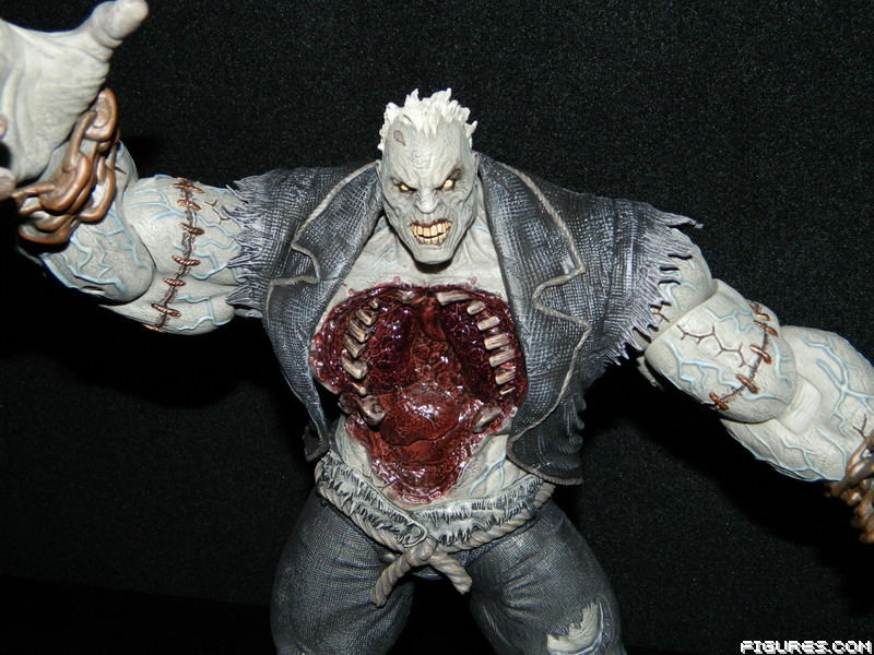 In the figure assortment we’ve enjoyed Series 1, 2, and 3, with Series 4 (new Batman, Deadshot, Talia, and Nightwing) on the way in March. In addition there have been several Deluxe figures like Mr. Freeze and Killer Croc. Now, prepare yourself for the coming of Solomon Grundy! The new Grundy figure is the biggest thing to come out of DC Collectibles (even bigger AND heavier than Darkseid!) yet, and it looks amazing in person. It’s got great textures on the clothing and wrinkled, stitched, and veiny flesh, and the head sculpt is really creepy. Of course, what everyone’s talking about is Grundy’s chest with its removable outer layer and heart! Fully articulated and screen accurate down to the chains on his wrists and rope belt, the massive Grundy is set for release in the Fall with an MSRP of $99.95.