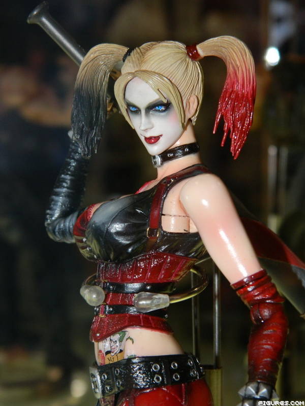 Square Enix has had a very successful run with their Play Arts Kai action figures based on the Batman Arkham Asylum/ City video games. Their introduction of the Caped Crusader in the super poseable, highly detailed figure format has earned them plenty of praise and a new league of fans. Square will be continuing their assortment of figures pulled from Arkham City with the addition of two lovely beauties: Harley Quinn and Posion Ivy. Harley, packing twin Mac-10s and a baseball bat, awes with some very intricate "tattoo" work on her midriff, while Ivy features bendy vines and a first for the Kai series: a display base. Her base will will feature bendy vines and a flower. Look for both this July priced at a SRP of $64.99. Square Enix told us that all future Play Arts Kai action figures will include a base of some kind - something that fans have been asking for and a great new addition to fully show off those incredible Plays Arts Kai poses. The upcoming Halo 4 Kai series, for example, will include Square's flight base with poseable display arm.
