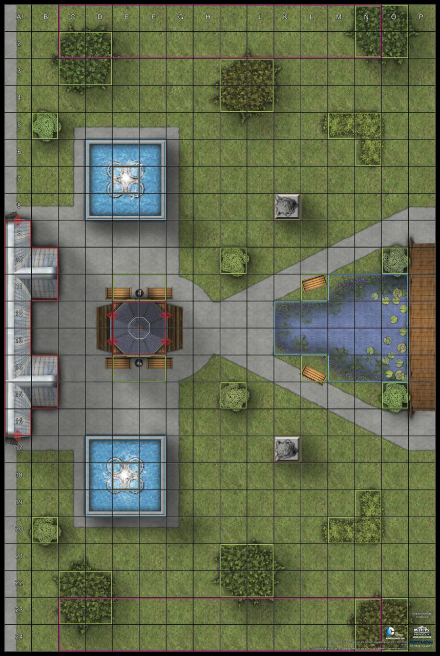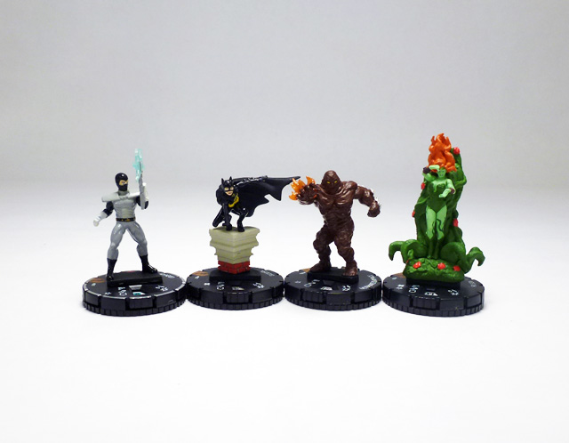 So how do you get the Flash Grenades and Poison Ivy? Well, this month’s big battle takes place in Poison Ivy’s home turf, Robinson Park! Gotham City’s equivalent to New York’s Central Park, it was named for Jerry Robinson, artist and creator of Robin and the Joker. The map version is a very pleasant expanse dotted with plenty of foliage (hindering terrain), two fountains and a pond (water terrain), two statues (blocking terrain), and two areas of elevated terrain at the rooftop of a gazebo and the entrance to a building along one edge. This is really a multi-purpose map that can be good for all sorts of teams, especially with the evenly spaced out water.