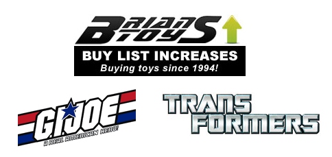 BriansToys.com have recently added modern G.I. Joe and Transformers to their buying page. If you or anyone you may know is looking to sell their collections, visit their Transformers and G.I. Joe buy lists page or download the Instant Quote/PDF lists.