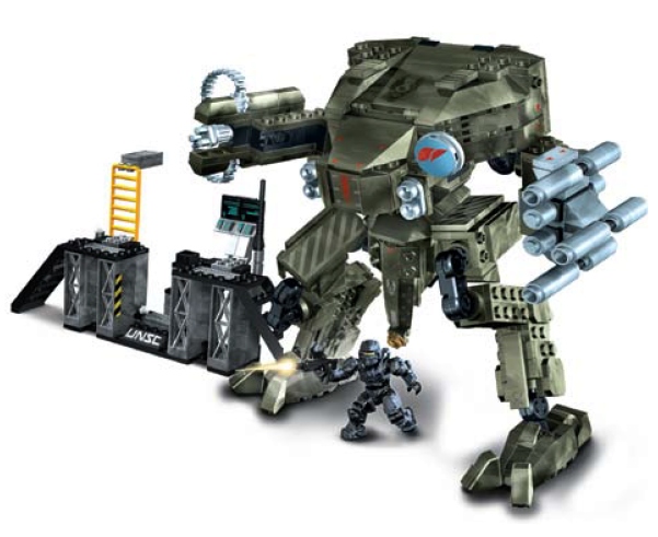The UNSC Mantis is the new multi-purpose battle mech that can turn anyone into an unstoppable one-man army. Its reinforced front facing armor helps protect the UNSC Spartan Warrior inside, while the heavy machine gun and 5-tube missile launcher makes short work of enemy units. Approximately 183 pieces.
