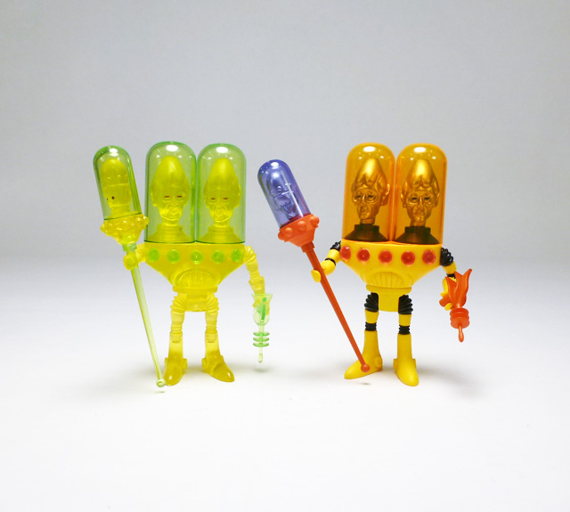 I think the Four Horsemen really hit a home run with these figures. The original versions were neat, don’t get me wrong, but these paint jobs bring the aliens to life like never before and just look great. Their varied colors, bright metallic paint, and translucent weapons and accessories also mean they fit in perfectly with the other Infinity Edition Outer Space Men who have come before them, so they’re an excellent addition to an OSM collection. You can pick up just Gemini and Orbitron for $26 or all three with Cyclops (and really, how can you resist the Cyclops?) for $50 right now at shopfourhorsemen.com. All Outer Space Men sets are limited editions and most sell out, so if you’re a 3 ¾ inch collector like me you shouldn’t wait too long!