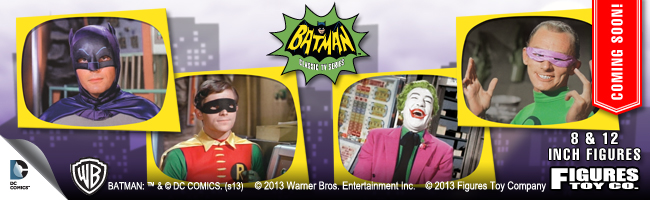 CFO Anthony Balasco states, “It has been my understanding that the collectors community would enjoy collecting retro 8 inch and 12 inch action figures based on the “Batman 1966 Classic TV Series”. When we saw that the rights were settled between the involved party’s we immediately became interested in acquiring the license”. We are proud to say that the collectors will be able to enjoy a vast selection of characters that have never been available before. Our head sculpts will look life like and the cloth costumes will be highly detailed. Series 1 will include Batman, Robin, The Riddler & The Joker. Future series will include The Penguin, Catwoman, Dick Grayson, Bruce Wayne, Egghead, King Tut, Mr. Freeze, Shame, Bookworm, Mad Hatter, Batman (with removable cowl), Robin (with removable mask), The Joker in prison baseball outfit, The Joker in opera outfit, & The Joker in grey suit. All Batman 1966 Classic TV Series figures will be available in both 8 inch & 12 inch starting early Fall 2013.