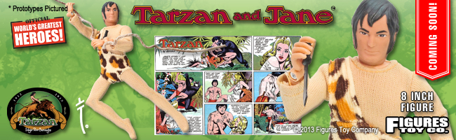 Tarzan is an exact reproduction of the one that Mego released, while Jane is a Figures Toy Company original. Available in 8 inch only.