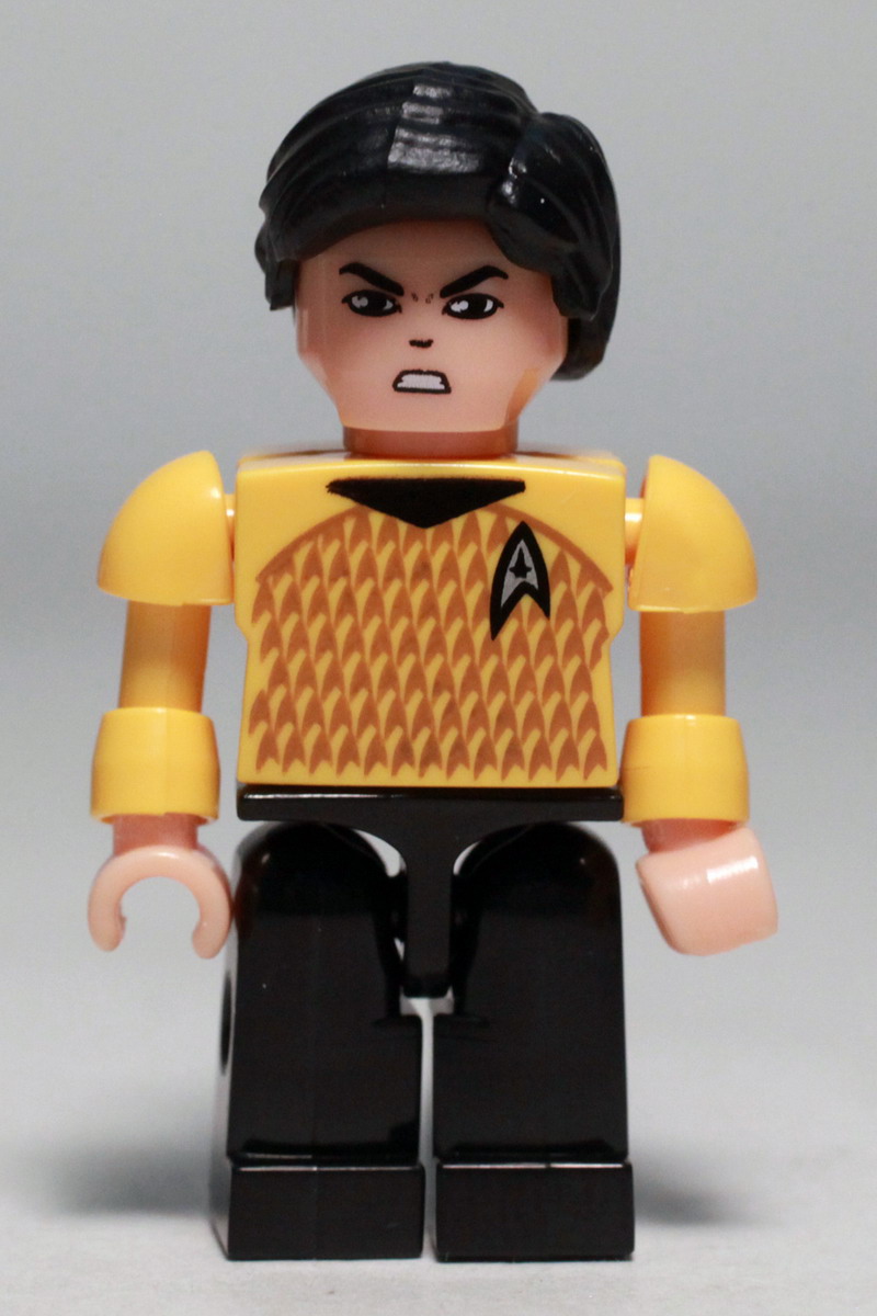 There are two minifigures, or KREONS included in this set as mentioned: Spock in Volcano gear and Sulu in standard costume. Spock has a removable helmet instead of the usual hair and pointy ears.