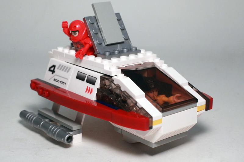 Building the set is easy enough and certainly takes up to an hour of time max. A cool feature on the shuttle craft is the light-up button that illuminates the interior cockpit section of the ship. There’s also opening doors both below and up top to give Spock options on whether to climb through the bottom or clean from up top.
