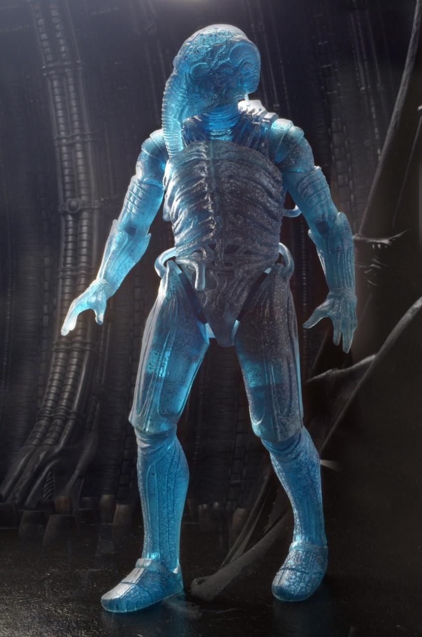As reported in our story HERE, NECA's third assortment of Prometheus action figures had undergone a lineup change. The new lineup, releasing this September, features "Holographic" versions of the Pressure Suit and Chair Suit Engineers. Using translucent blue plastic and hand-painted deco, these figures capture the holographic appearance of the Engineers as they are first seen by the crew - on the run from something terrible.
