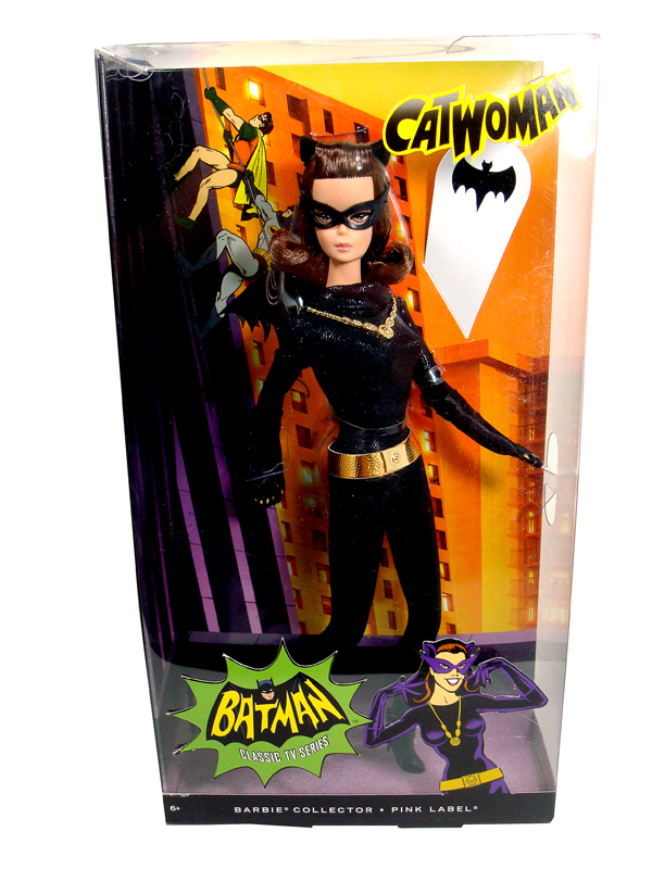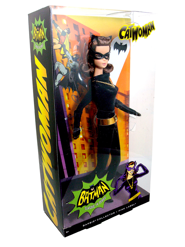Mattel has made several dolls over the years depicting Catwoman in her many forms as part of the Barbie line, along with several other characters in the DC Universe, but they are now tackling the 1966 Batman series for the first time with dolls of Julie Newmar as Catwoman and Adam West as Batman as part of the Barbie Pink Label brand. The Catwoman doll has been able for several weeks at various online and brick-and-mortar retailers, but was available for sale first at San Diego Comic-Con this year.