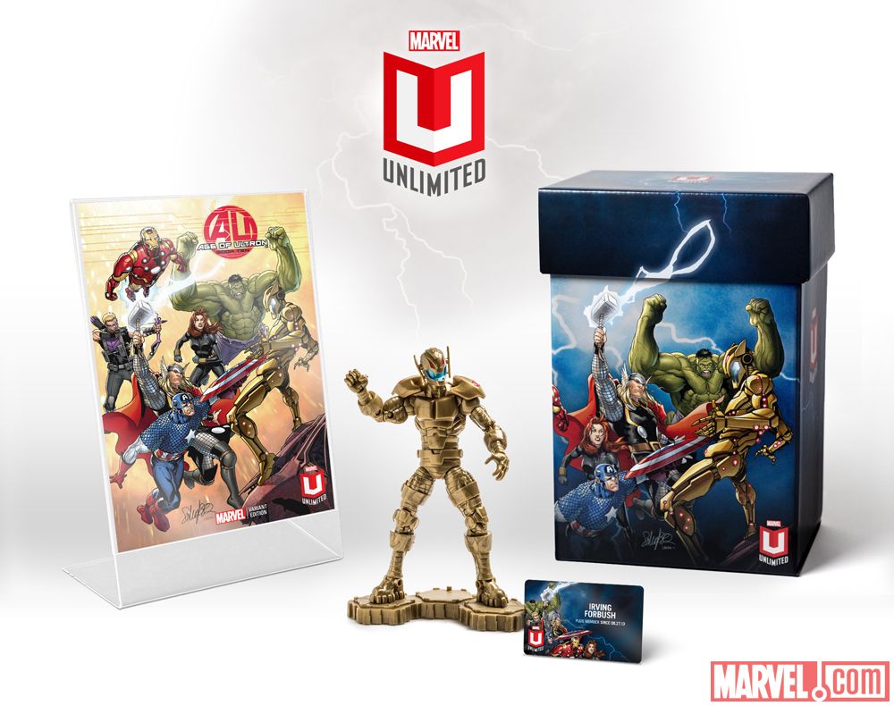 - Collectible Plus Member Kit – Age Of Ultron Edition – score a limited edition Hasbro Marvel Legends 6” AU Variant Ultron figure, an exclusive variant copy of AGE OF ULTRON #10 with art by superstar artist Salvador Larroca, a collectible Age of Ultron comics box , and a personalized member card!