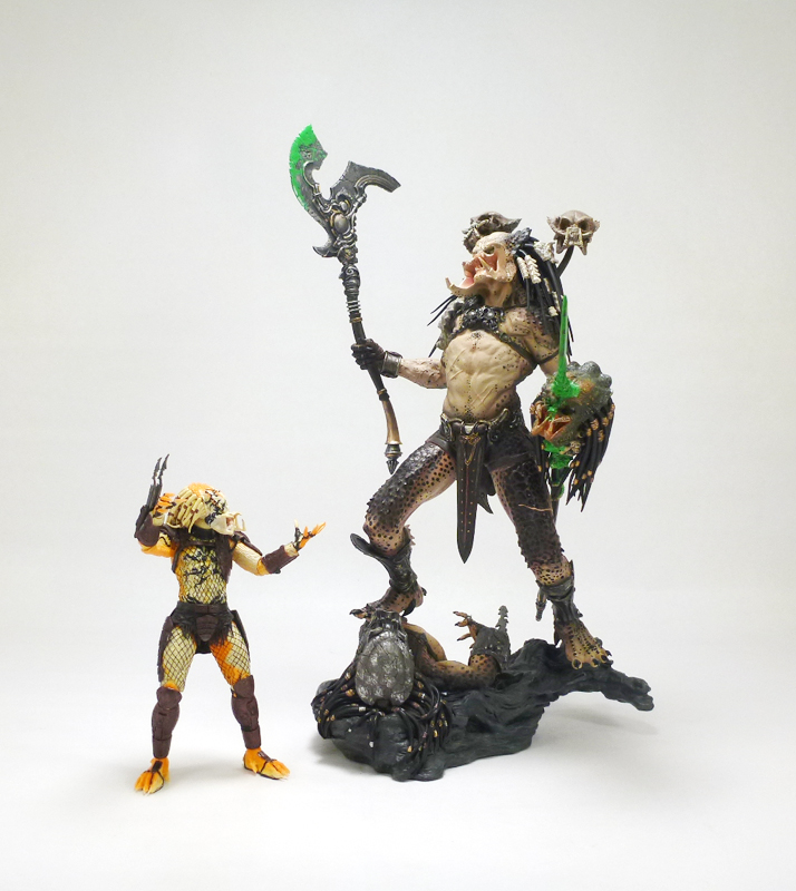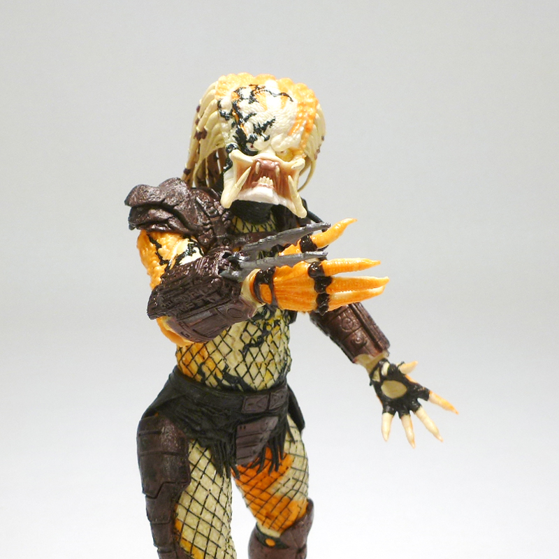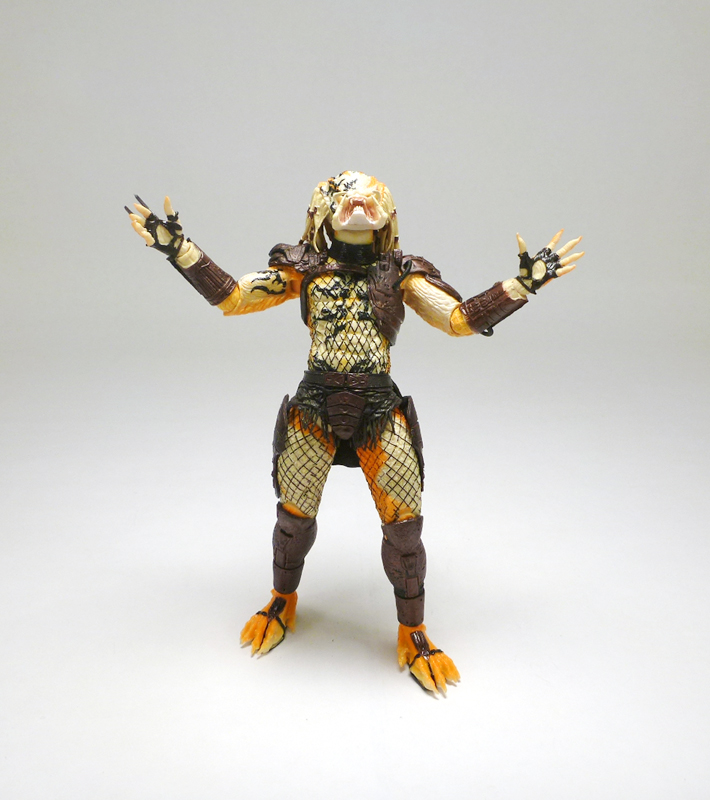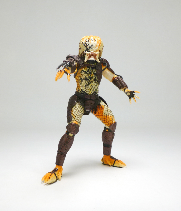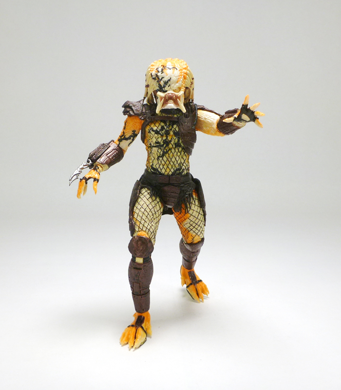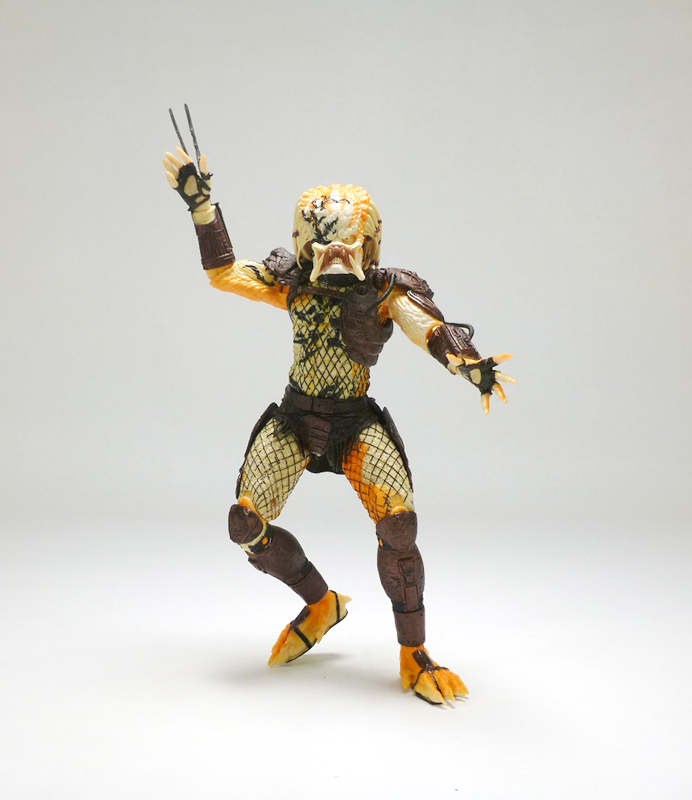 As a vicious hand to hand combatant the Albino Predator comes with no accessories, but does wear his extending wrist blades. The figure has the excellent articulation we’ve come to expect from the Predator line with a ball-jointed head, ball-jointed shoulders, ball-jointed elbows, wrists, waist, ball-jointed hips, thighs, double-jointed knees, and ball-jointed ankles. Standing just under 8 inches tall, the Albino is a very cool looking figure that was well worth the $25 at NECA’s Comic-Con booth. If you can find it for a good deal on the secondary market it will be a welcome addition to your more colorful and exotic Predators.