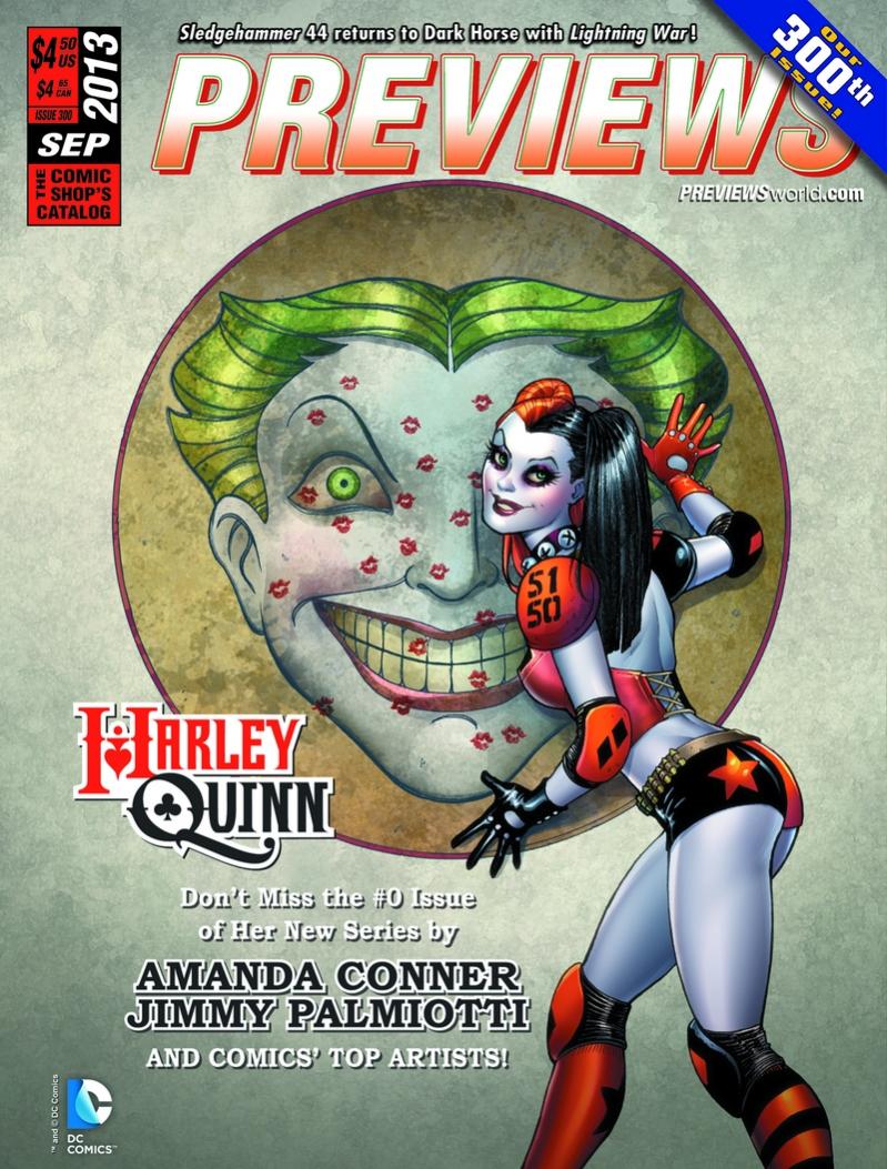 PREVIEWS has been the go-to resource for comic book specialty shops and fans to see the newest comics, graphic novels and pop-culture merchandise since October 1988. PREVIEWS is pleased to celebrate its 300th issue with the release of its September, 2013 catalog featuring DC Comics’ Harley Quinn on the cover