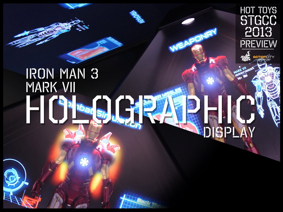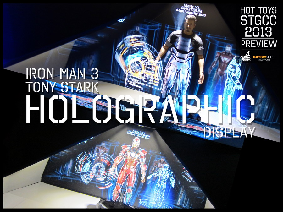 - Iron Man 3 holographic displays featuring the Tony Stark Collectible Figure and Hall of Armor animation, as well as featuring the Mark VII Collectible with Armors Assemble animation