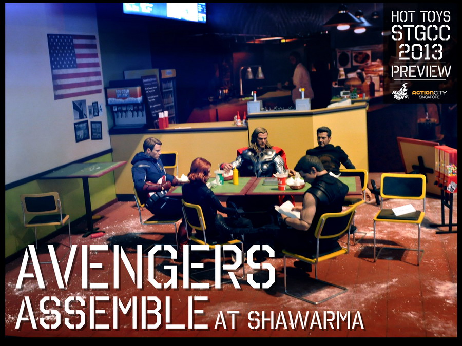 - Diorama of “Avengers Assemble at Shawarma” and “The Banishment of Thor”
