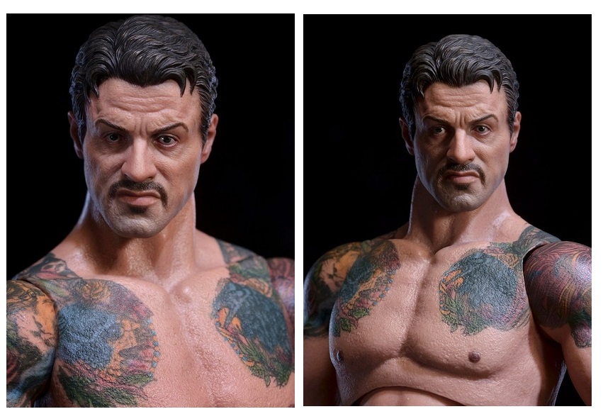The facial sculpt looks exactly like Sly from the film, complete with grimace, handlebar mustache, raised eyebrows, wrinkled forehead and steely 1,000 mile stare (above).