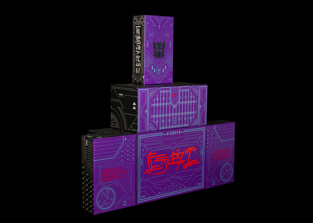 In further celebration of Johnson’s athletic achievements, the limited edition Megatron Rises 3-Pack incorporates the Nike CJ81 Megatron Trainer Max, the Megatron Nike Air Trainer SC II, and a special edition Nike CJ81 Megatron Elite TD Cleat. Inspired by the Allspark from Transformers lore, the box of the Megatron Rises 3-Pack is a unique, converting cube-shaped design. Decorated entirely with original artwork, the lines of the box mimic robotic surfaces and are augmented by triangles, hash marks, x’s, and o’s in reference to the football field and offensive passing plays. The effect is, like Calvin Johnson, “More Than Meets The Eye” - a package that opens to reveal all three shoes and the Hasbro action figure.