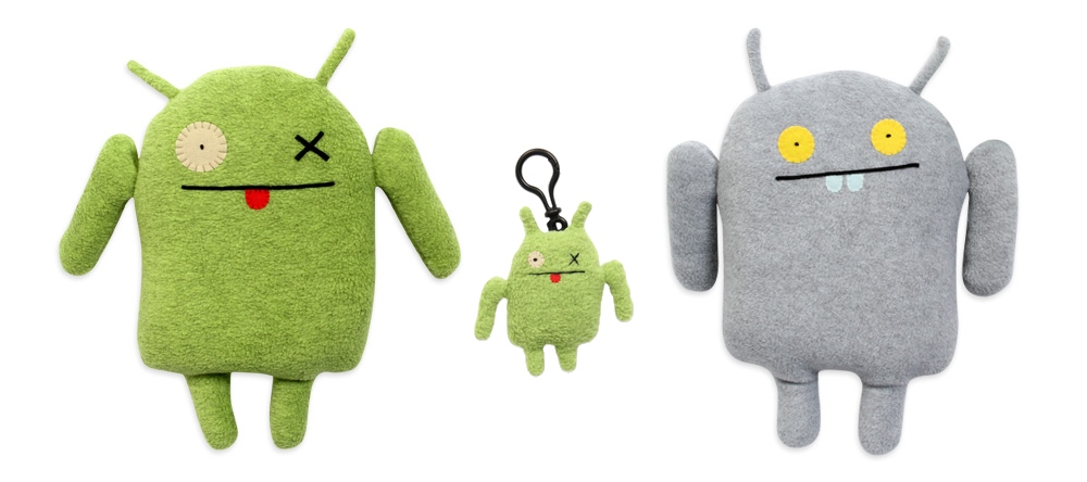 Pretty Ugly continues to pair their loveable creation - UGLYDOLL - with other popular licenses, their latest offering being Android plush toys available exclusively in the Google Store (googlestore.com). Uglydoll Android characters Android Ox and Android Babo lead the charge as huggable 11" plush and a 4" backpack clip accessory. Prices range from six to twenty dollars.