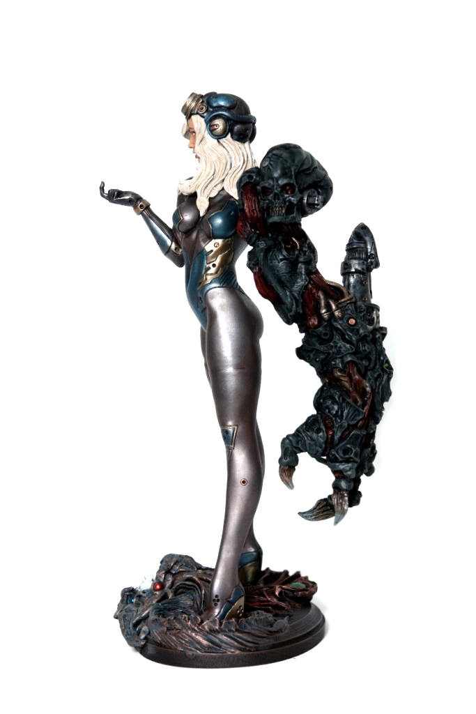 Through the miracle of science the astronaut Keira’s life is saved by her host, a benevolent yet powerful alien Priest and warrior know only as The Patriarch who has lost most of his limbs in trying to save Keira’s life ,he becomes her left arm of justice”.