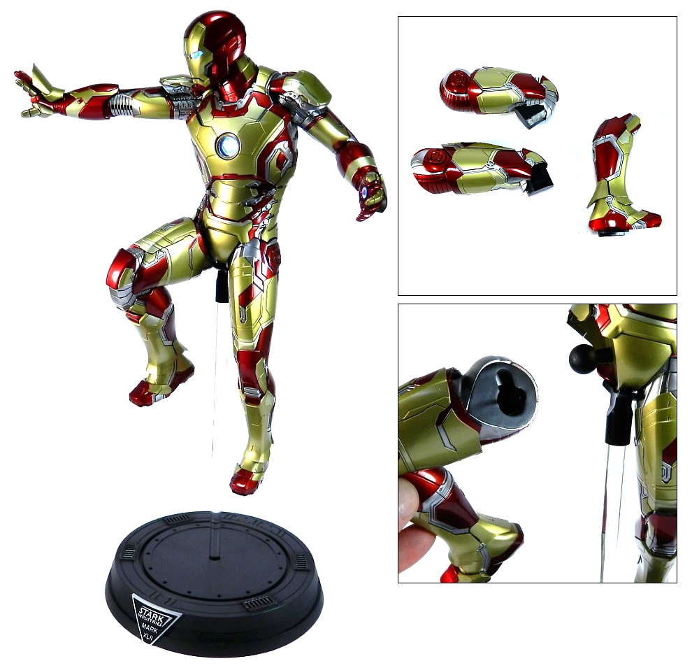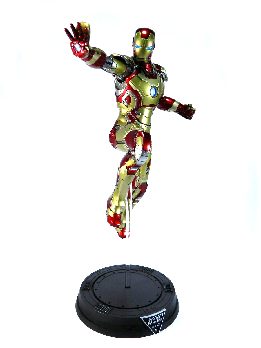 The first Power Pose release hitting retail later this month is the Iron Man Mark XLII as seen in the Tony Stark "armor-a-thon" feature film, Iron Man 3. The impressive gold, red and silver suit of armor is also seeing release as an upcoming Hot Toys Movie Masterpiece Die-Cast action figure, so which verison to purchase is simply a question of how much are you willing to spend. The MMSD MKXLII will set you back around $300, while the PPS MKXLII will cost you closer to $150. Packaged in a large collector-friendly closed window box, the Power Pose MKXLII arrives just like any other Hot Toys action figure. The box is attractive with it's Iron Man graphic-adorned slip sleeve - the name of the character and the series it is in clearly visible on the front panel. Sliding off the protective cardboard sleeve reveals a clear window view of the figure, and all its components, inside. Again, like all Hot Toys figures, the Power Pose Iron Man is easily removed (and stowed away) on stacked plastic storage trays. In true Hot Toys fashion, initial presentation is top notch and classy, a good sign of things to come.