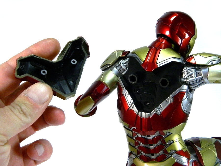 A statue... but with two possible display poses. That's Hot Toys' Power Pose Series in a nutshell. It's a concept I really like. For those that don't heavily play with their toys and are more concerned about a cool action pose or two, Power Pose is amazing. You actually do get some added articulation in the head, feet and armor plates. The Power Pose Iron Man isn't a totally static statue, just more of a stiff action figure. But coupled with Hot Toys' hyper-realistic action figure sculpting and paint apps, this Power Pose Iron Man really shines. If you were to display this figure with other fully articulated Hot Toys figures... you wouldn't be able to tell the difference. The added bonus of swappable left hands (fisted and open), as well as a cool light-up feature (eyes, chest, right hand and open left hand) make this Power Pose figure an affordable, attractive alternative to an MMS action figure.
